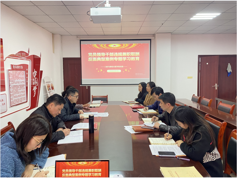 (通讯员:周彥)3月21日上午,口腔与眼视光医学院党委开展“党员领导干部违规兼职取酬反面典型专题学习教育”。学院党委班子成员、各办公室负责人参加。会议学习了文章《警惕违规兼职取酬新动向》《两头占必然两头空·莫当“两栖干部”》,观看了警示教育片“这些违规兼职取酬行为不能有!”