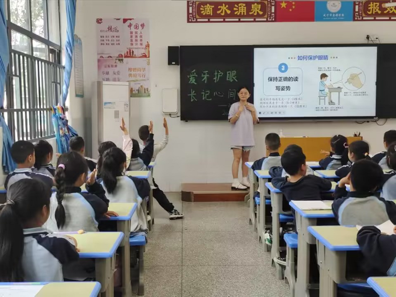 (通讯员:胡思颖)为深入学习宣传贯彻习近平新时代中国特色社会主义思想,扎实推进主题教育学习走深走实,5月17日下午,口腔与眼视光医学院赴泉都学校开展主题教育实践活动。此次活动旨在弘扬爱国卫生优良传统,扎实开展卫生健康知识宣教,促进青少年养成良好的卫生健康习惯。院党委书记黄彬、副书记程鹏、辅导员以及爱眼护牙志愿服务团队的同学参与了此次活动。