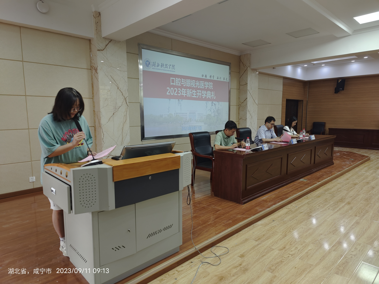 (通讯员:胡思颖)11日上午,口腔与眼视光医学院2023级新生开学典礼在教3-401举行。学院党委书记黄彬、副院长熊丽、专业负责人、师生代表、三办主任及全体辅导员出席了此次开学典礼,会议由学院副书记程鹏主持。