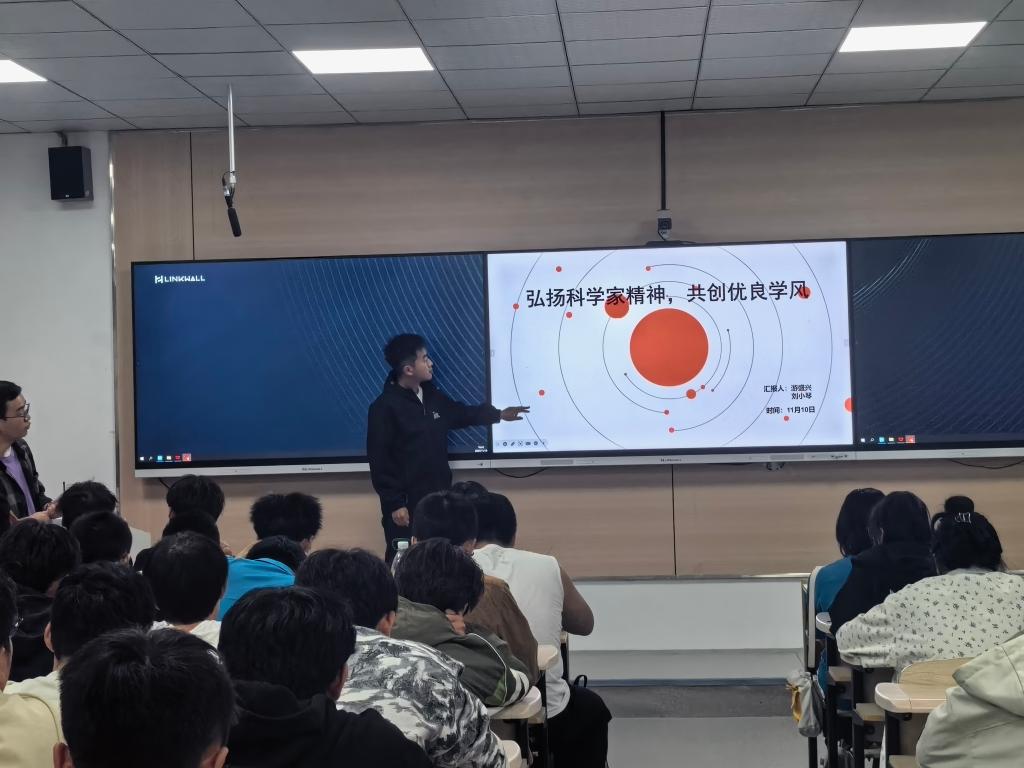 学风是读书之风,是治学之风,更是做人之风。优良学风是大学精神的集中体现、是高等学校的立校之本与发展之魂、是激励大学生锐意进取的强大精神力量。为进一步明确学期奋斗目标,营造浓厚学习氛围,11月10日,学院组织在校班级召开“弘扬科学家精神,共促优良学风”主题班会。