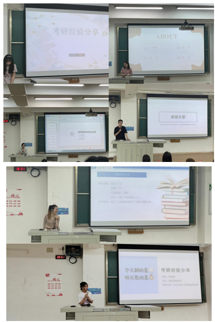 交流会共有9名同学上台进行分享,她们从不同专业、不同层次出发,大到如何正确择校,小到专业知识点的记忆技巧等等,结合自身特点与台下的学弟学妹们分享着自己的考研经验。