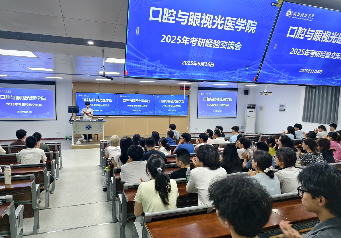 (通讯员 王艳)为帮助在校学生明确考研目标,掌握科学的考研备考方法,激发学习动力,2025年5月16日晚7点,由口腔与眼视光医学院举办的考研经验交流会在教5-301顺利举行。本次活动邀请五位在2024年考研中取得优异成绩的学长学姐,他们倾囊相授,为怀揣考研梦想的学弟学妹们带来了一场干货满满的经验分享盛宴,现场座无虚席,气氛热烈。