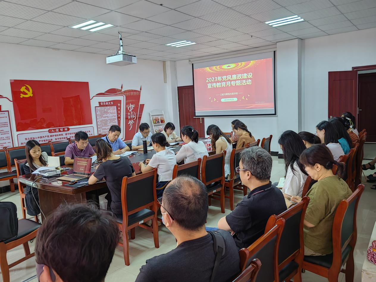 (通讯员:黄红) 为落实《中共湖北省纪委关于印发<2023年全省党风廉政建设宣传教育月活动方案>的通知》(鄂纪发〔2023〕6号)、《2023年全市党风廉政建设宣传教育月活动实施方案》(咸纪发〔2023〕4号)等文件精神,响应学校2023年党风廉政建设宣传教育月活动号召,持续推动pp电子游戏官网学习贯彻习近平新时代中国特色社会主义思想主题教育走深走实,切实加强学院党风廉政建设,9月2日上午,口腔与眼视光医学院党委组织全院教职员工开展了2023年党风廉政建设宣传教育专题学习,本次学习由院党委书记黄彬主持。