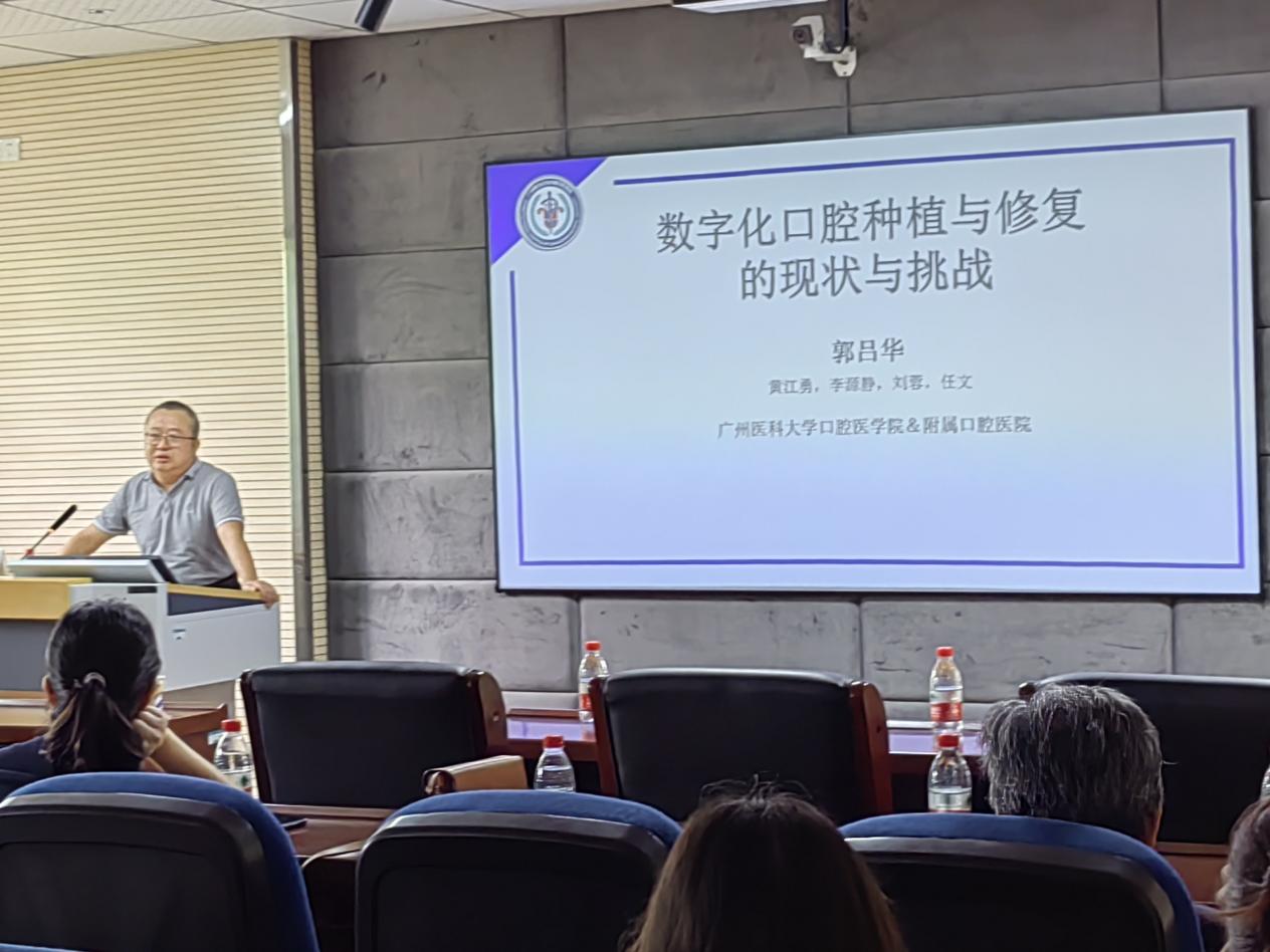郭吕华教授现任广州医科大学口腔医学院&附属口腔医院副院长,主任医师,博士生导师。多年来,郭吕华教授专注于生物材料、组织工程、无牙颌种植修复、3D打印与数字化口腔医疗的基础与临床研究。9月28日上午10点,在师生们热烈的掌声中,题为“数字化口腔种植与修复的现状与挑战”的学术讲座正式开始。
