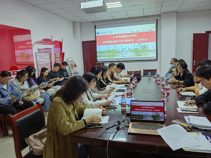 (通讯员:黄红) 为切实加强实验室安全管理,保障师生的人身和财产安全,维护教学、科研工作的正常秩序,口腔与眼视光医学院于10月26日下午7点组织召开了实验室安全知识学习与考试工作专题会议。黄玉婵副院长、党政办主任、各实验室责任人、新进教师及全院2023级全体班干部参加了会议。会议由党政办主任黄红同志主持。