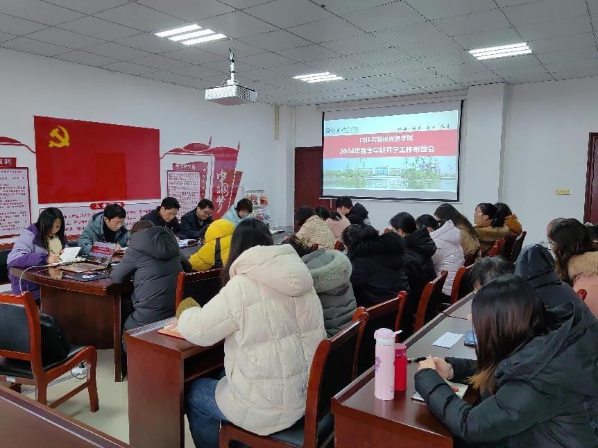 (通讯员:黄红) 2月29日下午,口腔与眼视光医学院召开2024年春季学期开学工作会议。会议由书记黄彬主持,学院领导班子成员、全体教职员工参加会议。