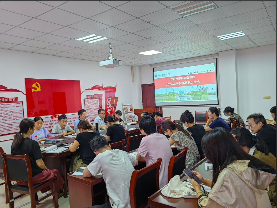 (通讯员:黄红) 8月25日下午,口腔与眼视光医学院召开2024年秋季学期开学工作会议。会议由口腔与眼视光医学院党委书记黄彬主持,学院领导班子成员、全体教职员工参加会议。