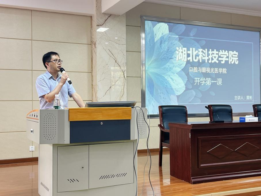 开学典礼后,口腔与眼视光医学院党委书记黄彬,为全体新生讲授开学第一课,从自身的专业领域追求,讲到学科所需专业知识技能基础、团队协作能力,再到科研竞赛等方面,黄书记娓娓道来,希望新生找准目标、心怀热爱、不懈坚持。