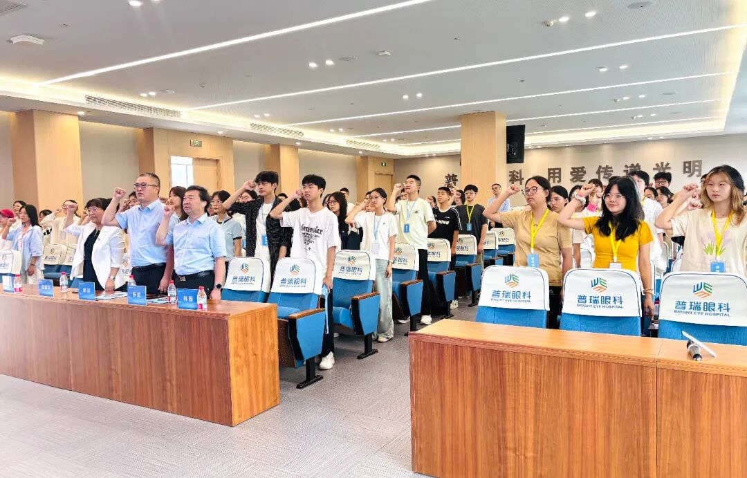在普瑞眼科武汉一城两院,眼视光医学专业新生们通过观看宣传片、聆听行业报告、参与“启明”仪式与白大褂授予典礼,进一步明确了学科方向与职业使命。林珊副院长、张斌院长、黄治敏院长等分别从行业趋势、学科价值、职业规划等角度为同学们指明方向。实地参观各科室与设备中心,更是让同学们真切感受到眼科医学的科技含量与人文关怀。