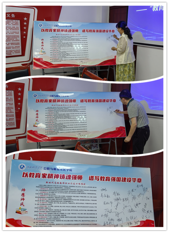 会议伊始,黄玉婵副院长作专题领学,传达了习近平总书记关于教育的重要论述精神,并带领全体教师深入学习《新时代高校教师职业行为十项准则》等文件。并强调,全体教师应深刻领会“教育家精神”的核心要义,将其内化于心、外化于行。学习结束后,全体教职员工庄重地签订了《pp电子游戏官网教师师德承诺书》,作出了对教育事业和职业道德的坚定承诺。