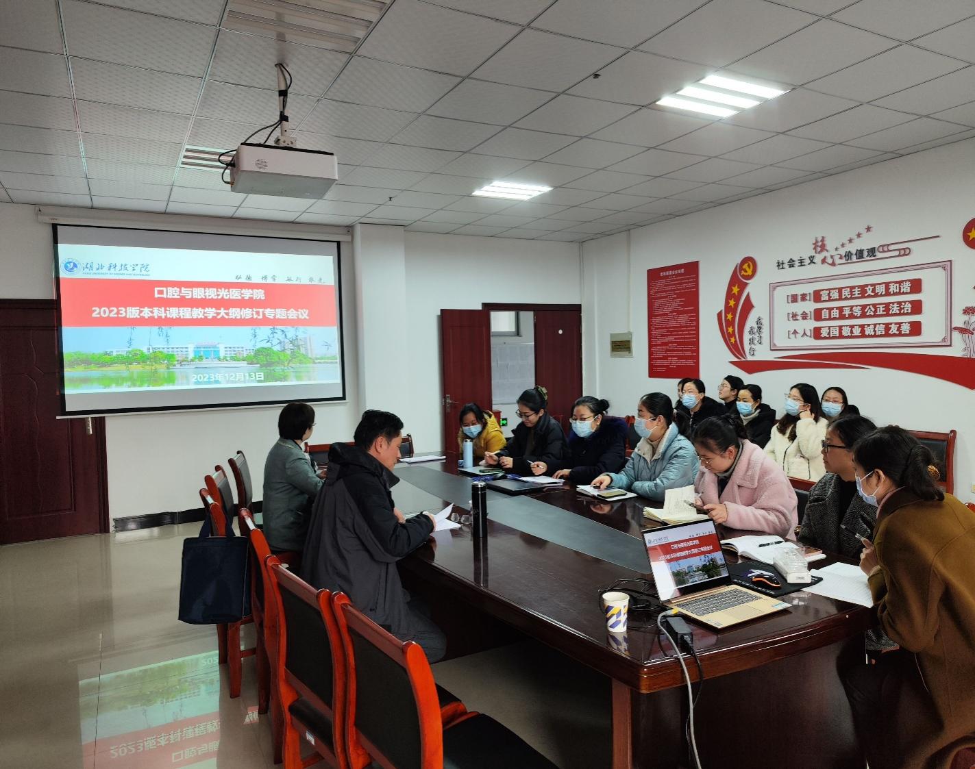 (通讯员:李淑华)为落实立德树人根本任务,更新教育教学理念,深化教育教学改革,根据《pp电子游戏官网人才培养方案管理办法》 和《pp电子游戏官网关于修订2023版人才培养方案的指导意见》,保证2023 版本科课程教学大纲编写工作高质量完成,口腔与眼视光医学院于2023年12月13日上午9:00在医药楼3栋五楼会议室召开了课程教学大纲修订专题会议。会议由分管教学副院长黄玉婵主持,口腔与眼视光医学院全体专任教师参加会议。